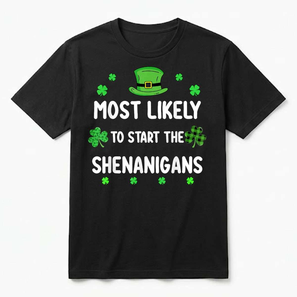 St Patricks Day Shamrock Most Likely to Start The Shenanigan T-Shirt